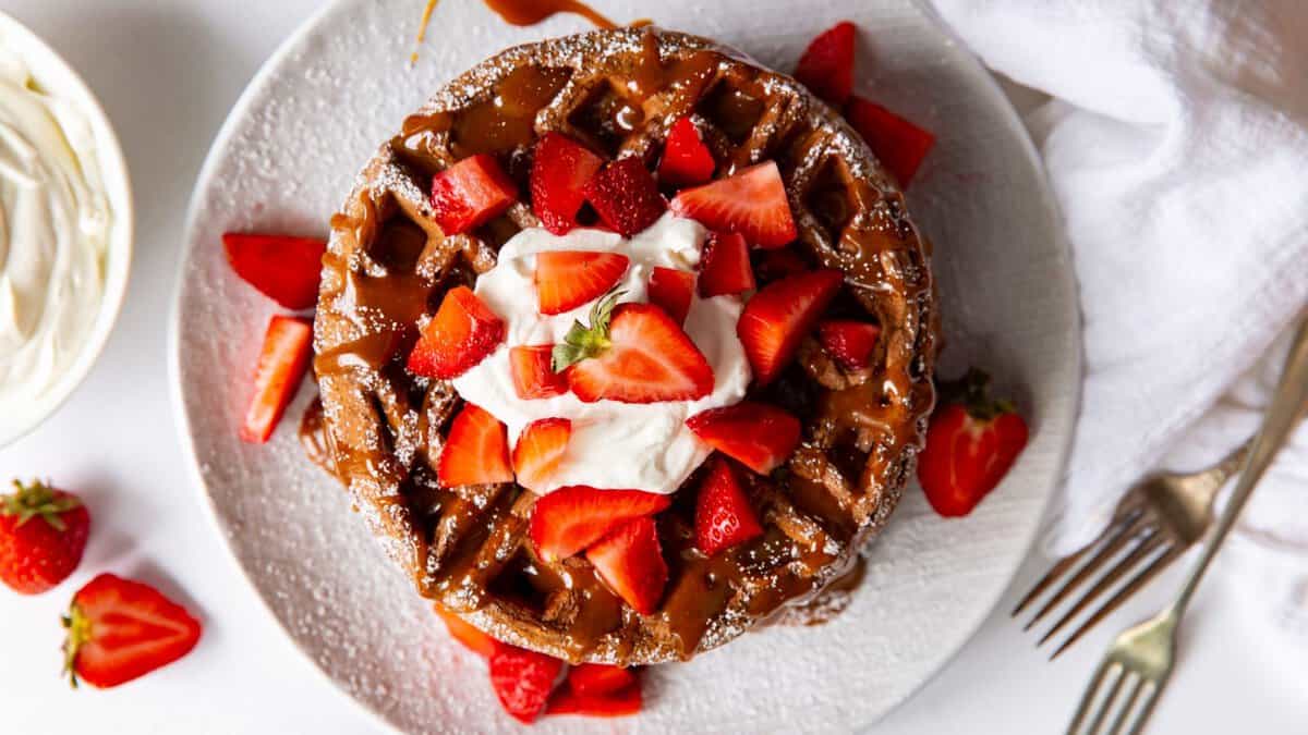 These waffles have a deep cocoa flavor and are made with buckwheat flour for a hearty bite. They’re not overly sweet, so they pair well with fruit or a bit of syrup. The batter mixes fast and cooks evenly in any standard waffle maker. They’re a good option when you want something different from plain batter.
