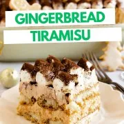 Gingerbread Tiramisu adds a fun holiday twist to the classic Italian tiramisu dessert with gingerbread spice mix and cute gingerbread cookies as decoration. Serve it with a scoop of ice cream as a delicious alternative to a baked Christmas dessert.