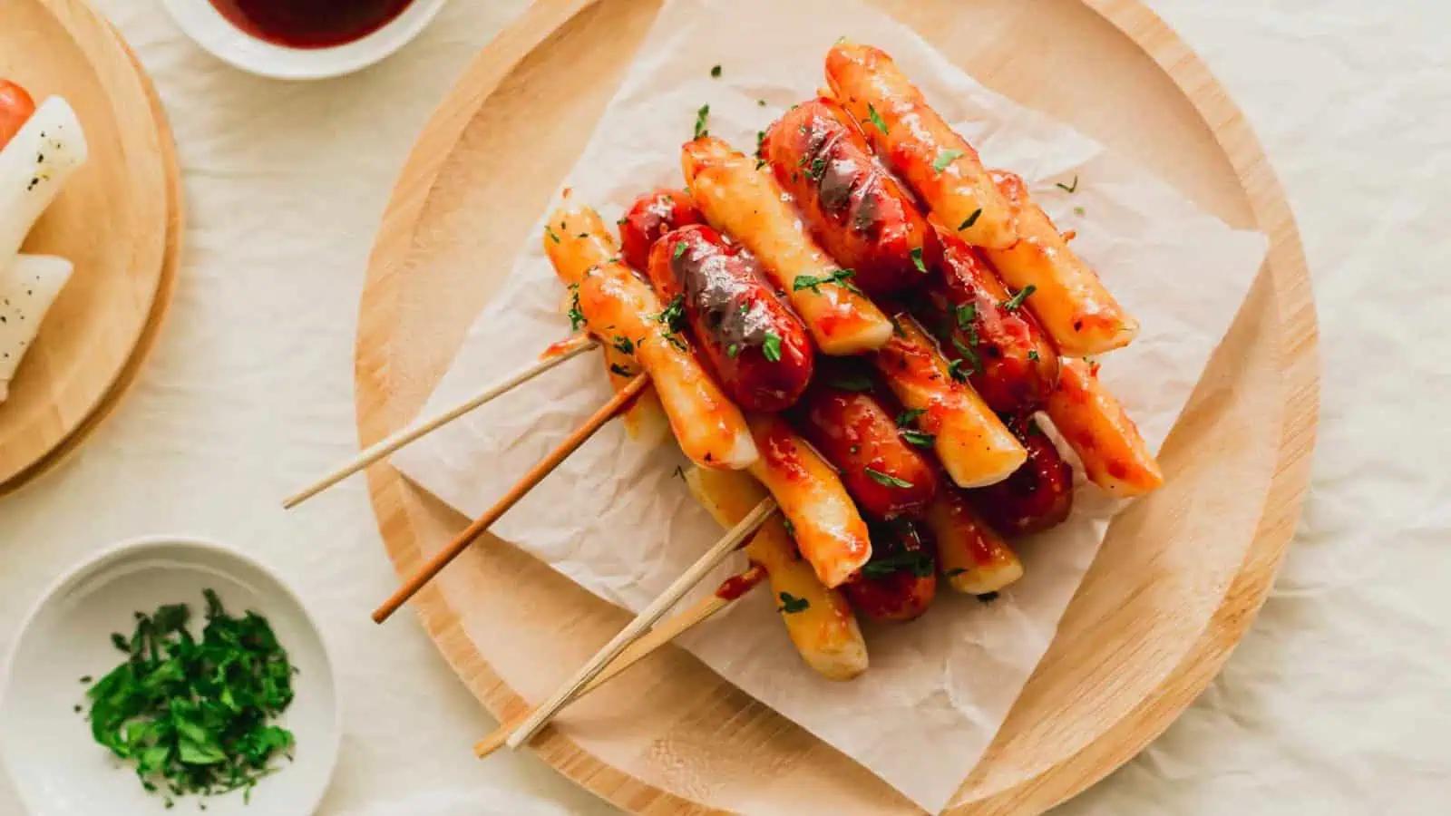 Sotteok (Skewered Korean Rice Cakes with Sausages) combines chewy rice cakes and savory sausages on a stick. It's a popular Korean snack and a great example of global street foods you can make at home.