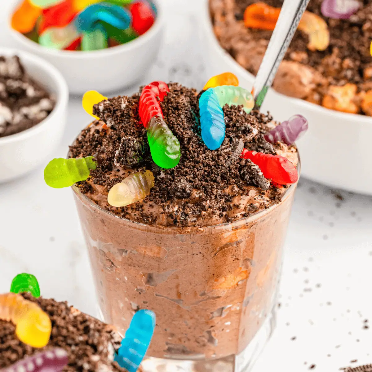 The classic! Chocolate pudding, whipped topping, and crushed Oreos layered in cups, then finished with worms, bones, and cookie headstones. Perfect for parties and easy for kids to decorate themselves.