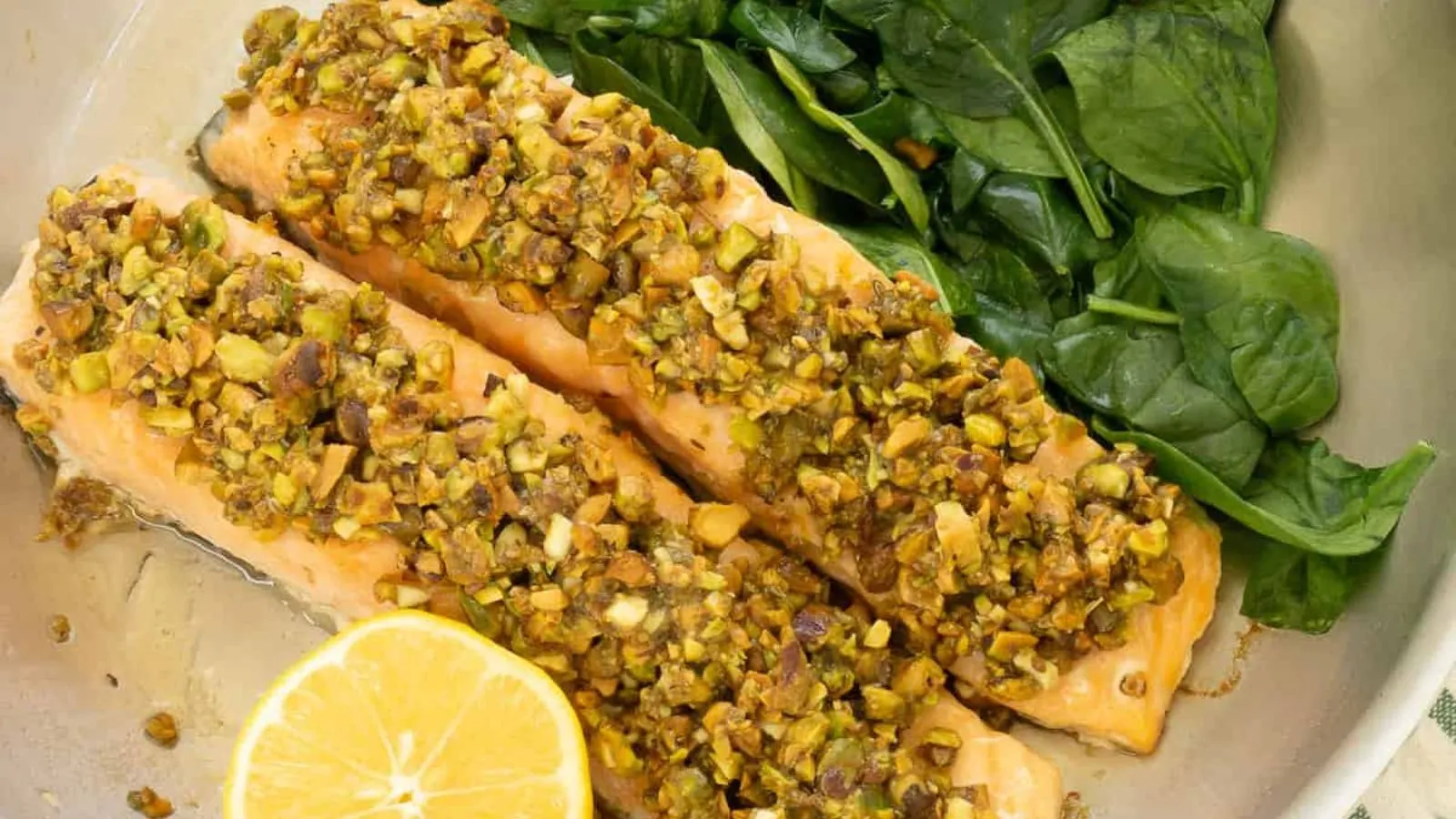 30 Minute Pistachio Crusted Salmon. Photo credit: Craving Something Healthy.