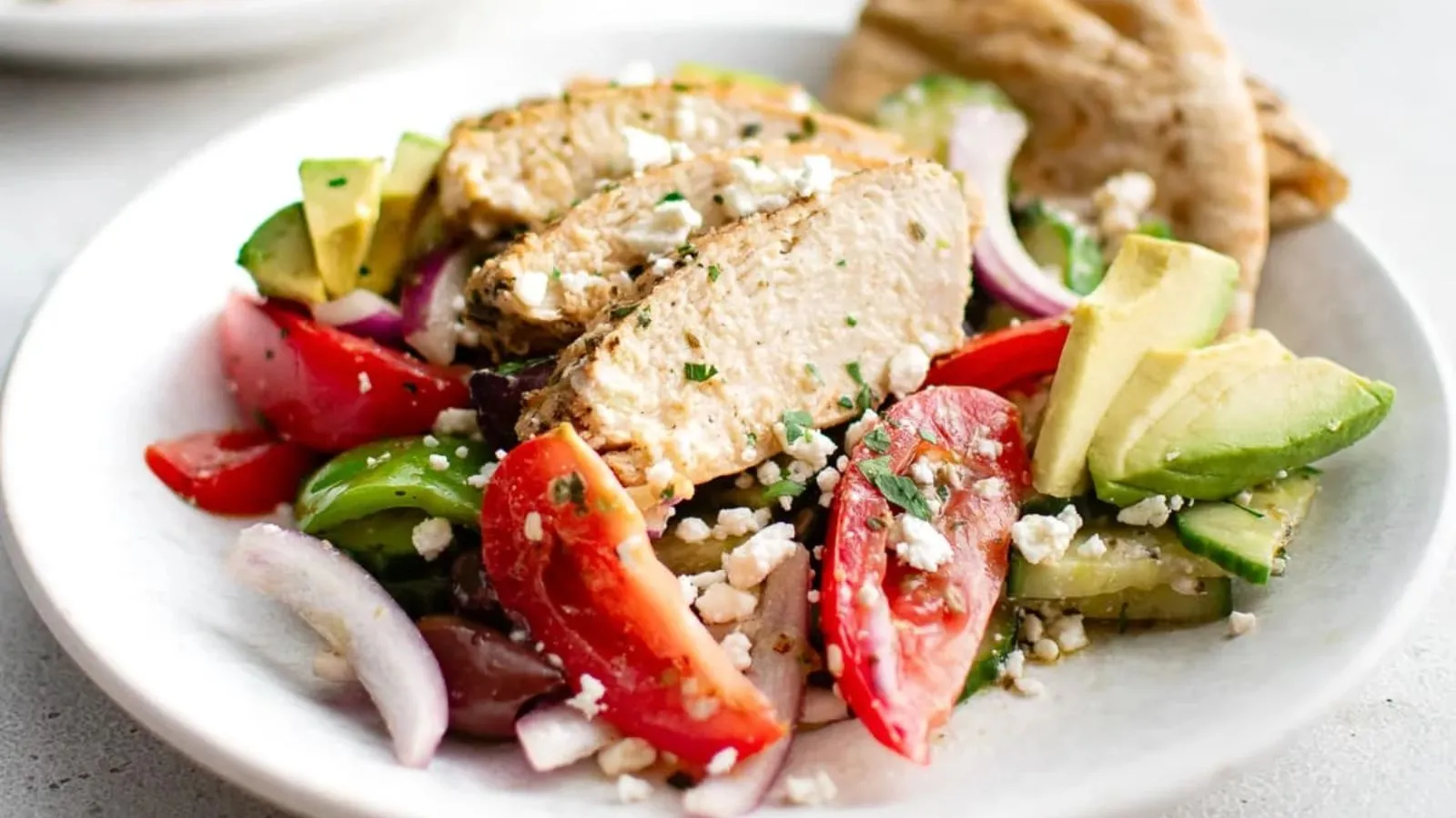 Think of this as a whole meal that doesn’t heat up your kitchen. Packed with fresh veggies, chicken, and creamy feta, it keeps you full without making you sleepy.