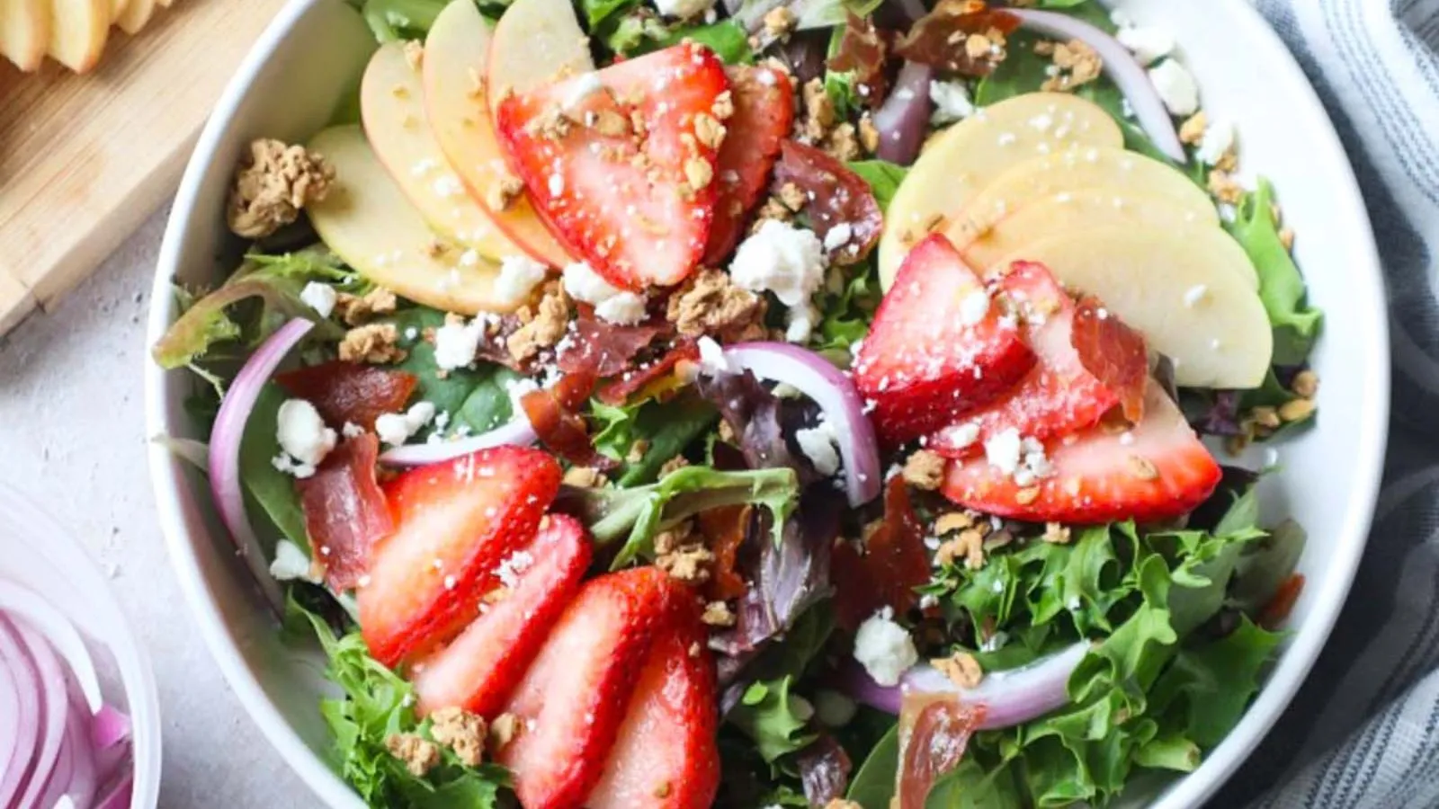 Apples and strawberries team up for a mix that’s crisp, sweet, and just a little tangy. It’s one of those throw-together salads that looks way more effortful than it is.