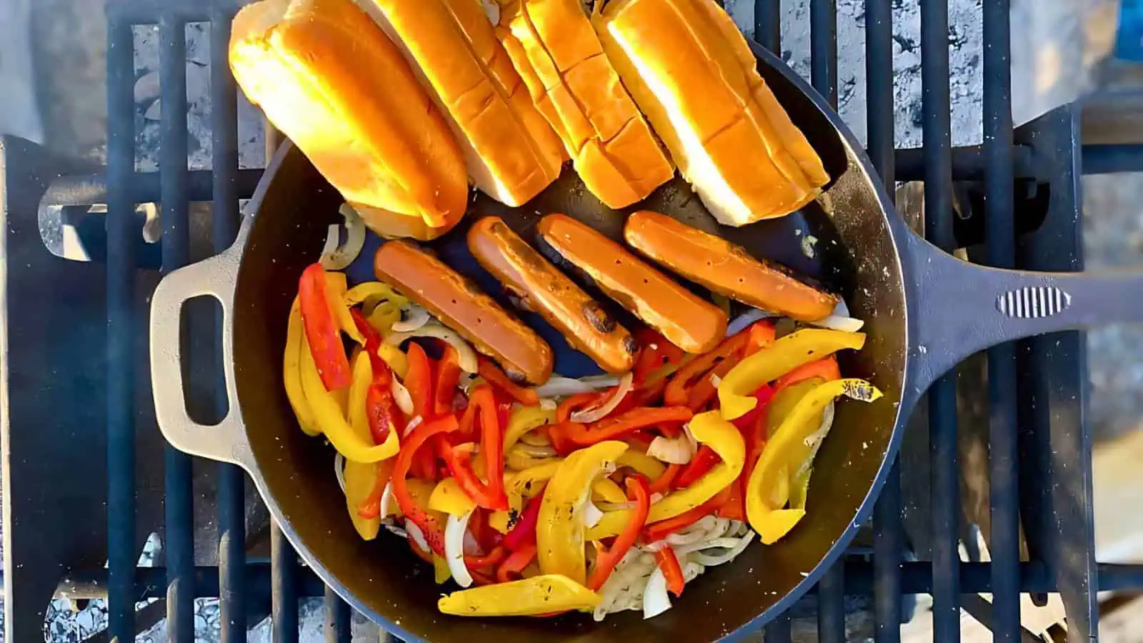 Campfire Hot Dogs with Peppers and Onions