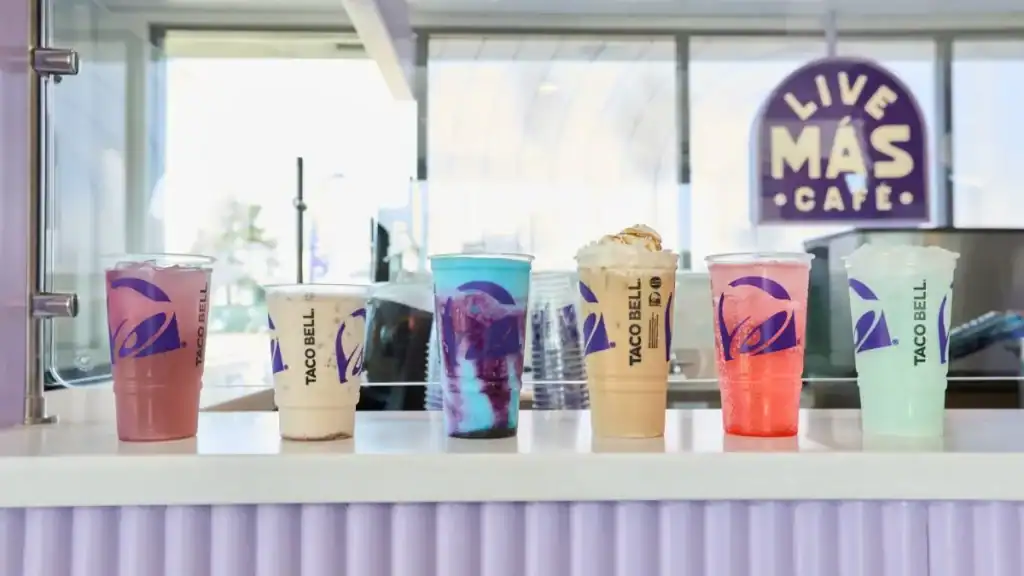 Taco Bell’s Live Más Café is a beverage-forward spin-off with colorful refreshers, flavored coffees and heavy customization. The concept targets social media friendly drinks at value prices and plans an initial cluster of locations in markets like Southern California and Texas. The goal is to capture drink-only occasions beyond traditional meal times and build repeat traffic with so called Bellristas focused on speed.