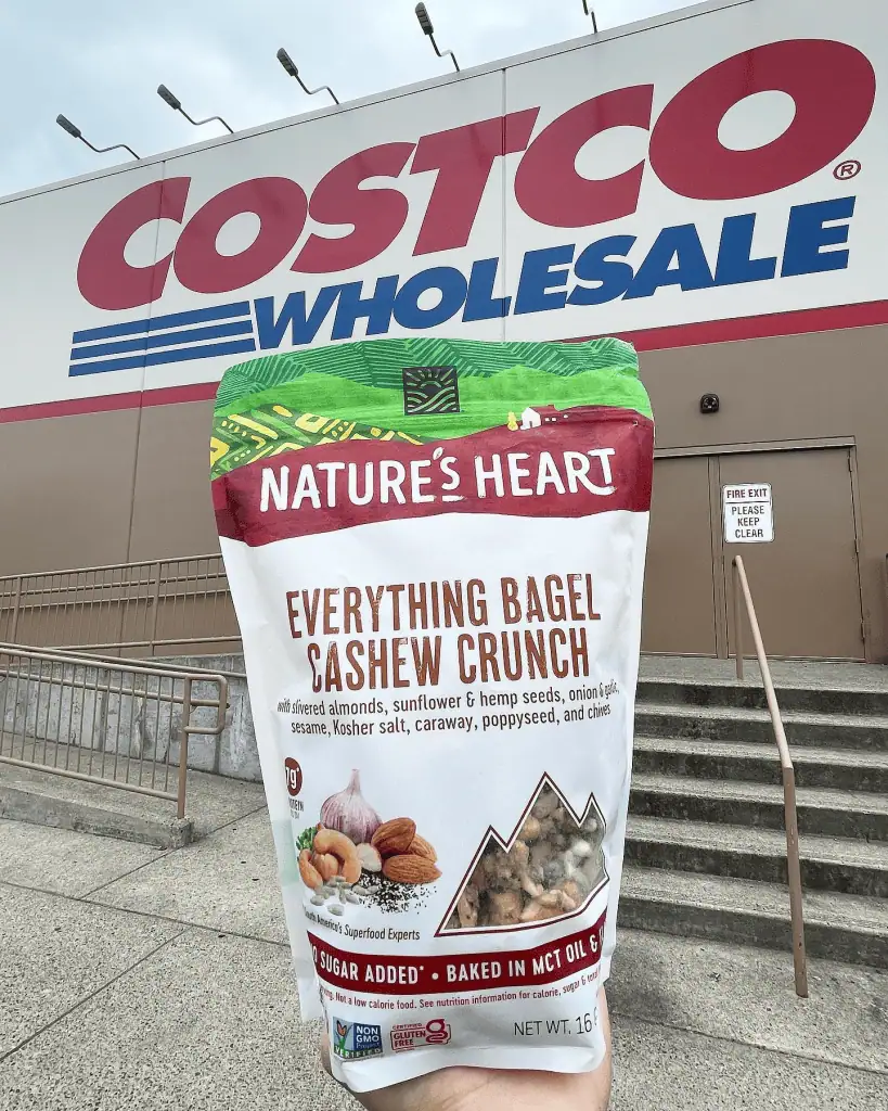 I tried a sample of this near the pharmacy, and it was a total game-changer for my snack pantry. It’s a blend of jumbo cashews, dried garlic, onion, and poppy seeds that tastes exactly like a high-end deli bagel. In 2026, “Everything Bagel” seasoning is still king, and Costco has perfected the ratio in this massive two-pound jar. I justified it by telling myself cashews are a “healthy fat” and a great source of protein for my afternoon slumps.