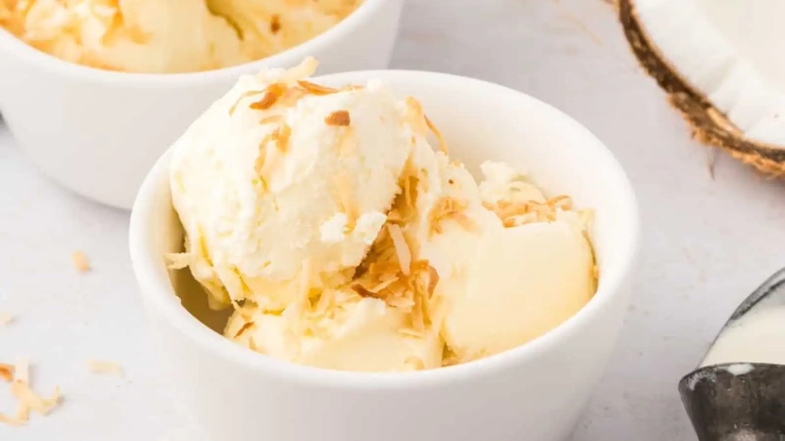 This coconut-based recipe skips refined sugar and keeps things extra simple. It’s dairy-free and easy to adjust if you want it sweeter or richer. Freeze it until firm, then serve it with fruit or on its own. Definitely one of the more refreshing options.