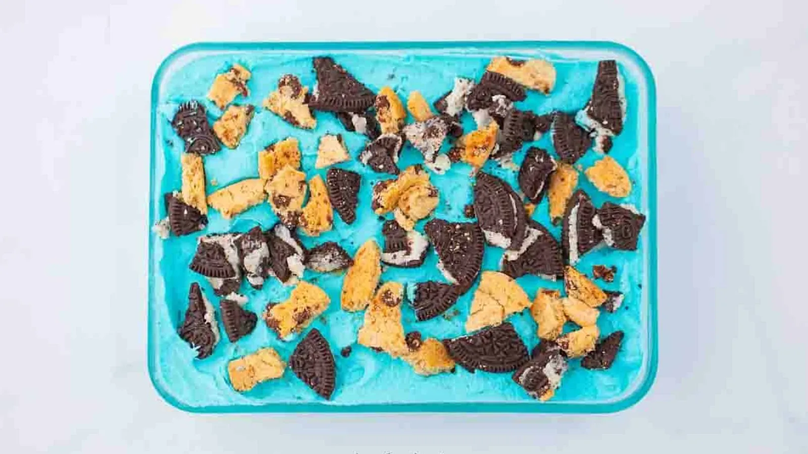 This bright blue vanilla-based ice cream is loaded with cookie chunks for a fun and nostalgic treat. It's easy to prep and great for birthdays, weekends, or any random cookie craving. Kids love the color, but adults will probably sneak a few scoops too. Just mix, freeze, and serve.