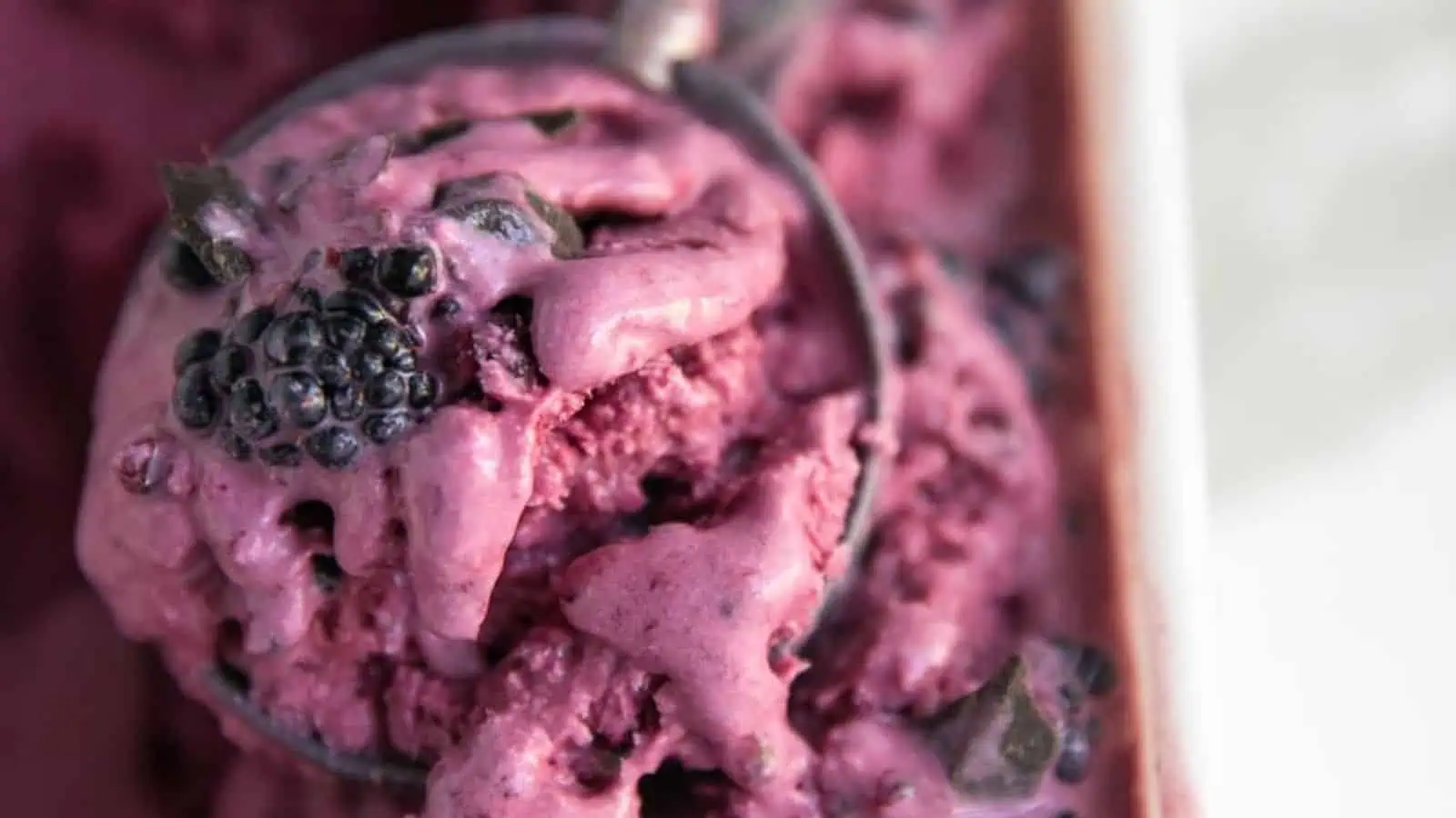 No Churn Blackberry and Chocolate Chunk Ice Cream