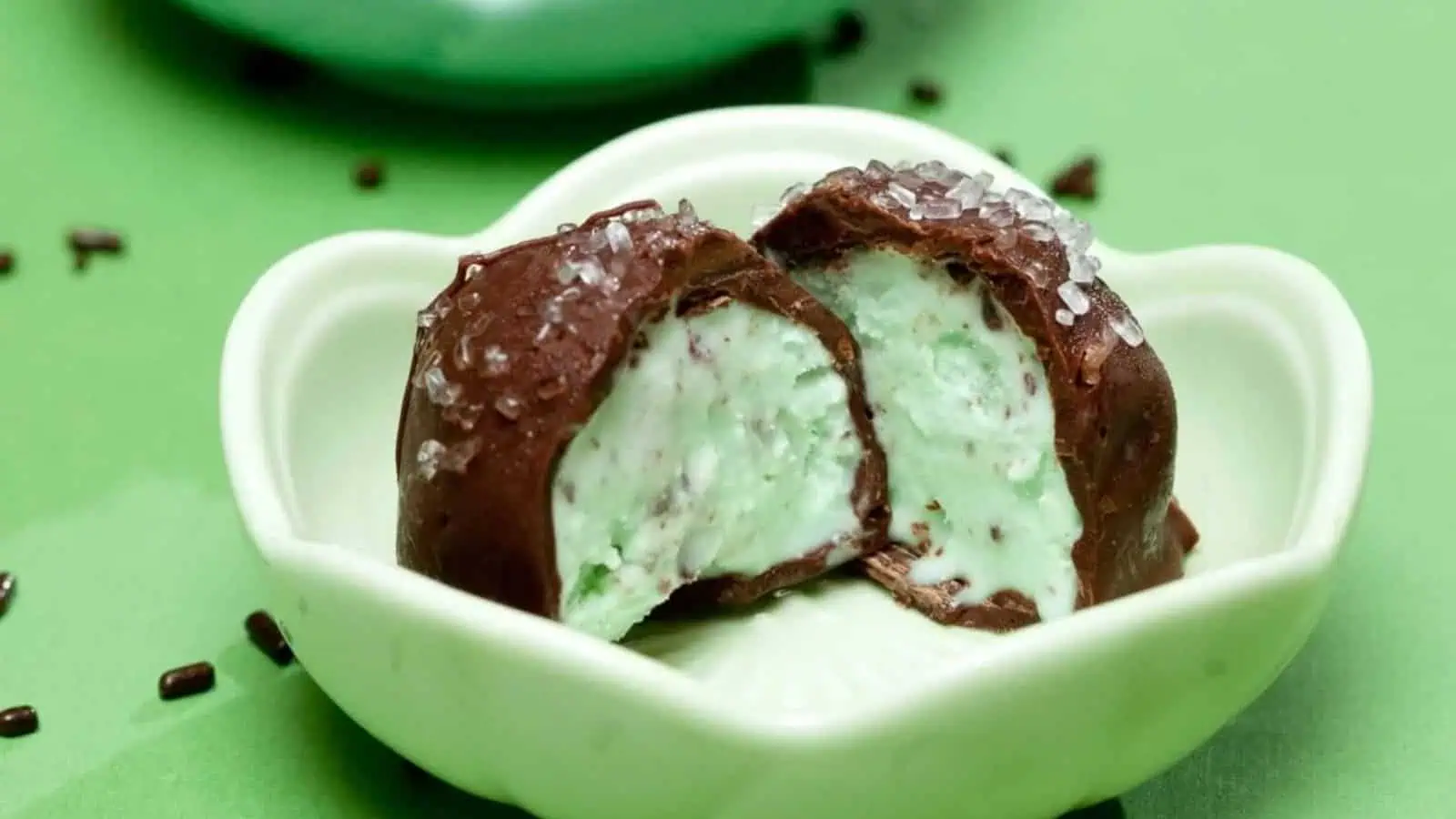 These bite-sized treats start with scoops of mint chocolate chip ice cream rolled into balls. Each one is coated in a smooth chocolate shell and served cold. They’re easy to prep ahead and even easier to grab straight from the freezer. Great for snacking or small-group desserts.