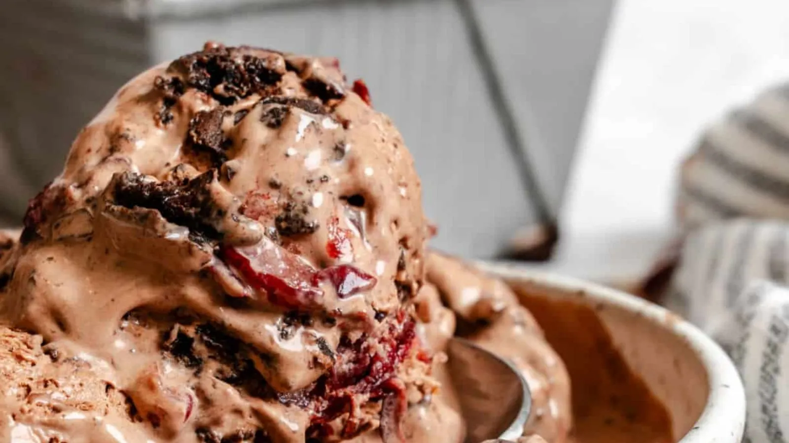 With cherry compote, chocolate chunks, and a smooth vanilla base, this no-churn dessert pulls in the flavors of a classic Black Forest cake. It’s one of the richer ice cream recipes without ice cream maker, but still simple to put together. Chill it overnight and scoop when ready. It’s a strong crowd-pleaser.