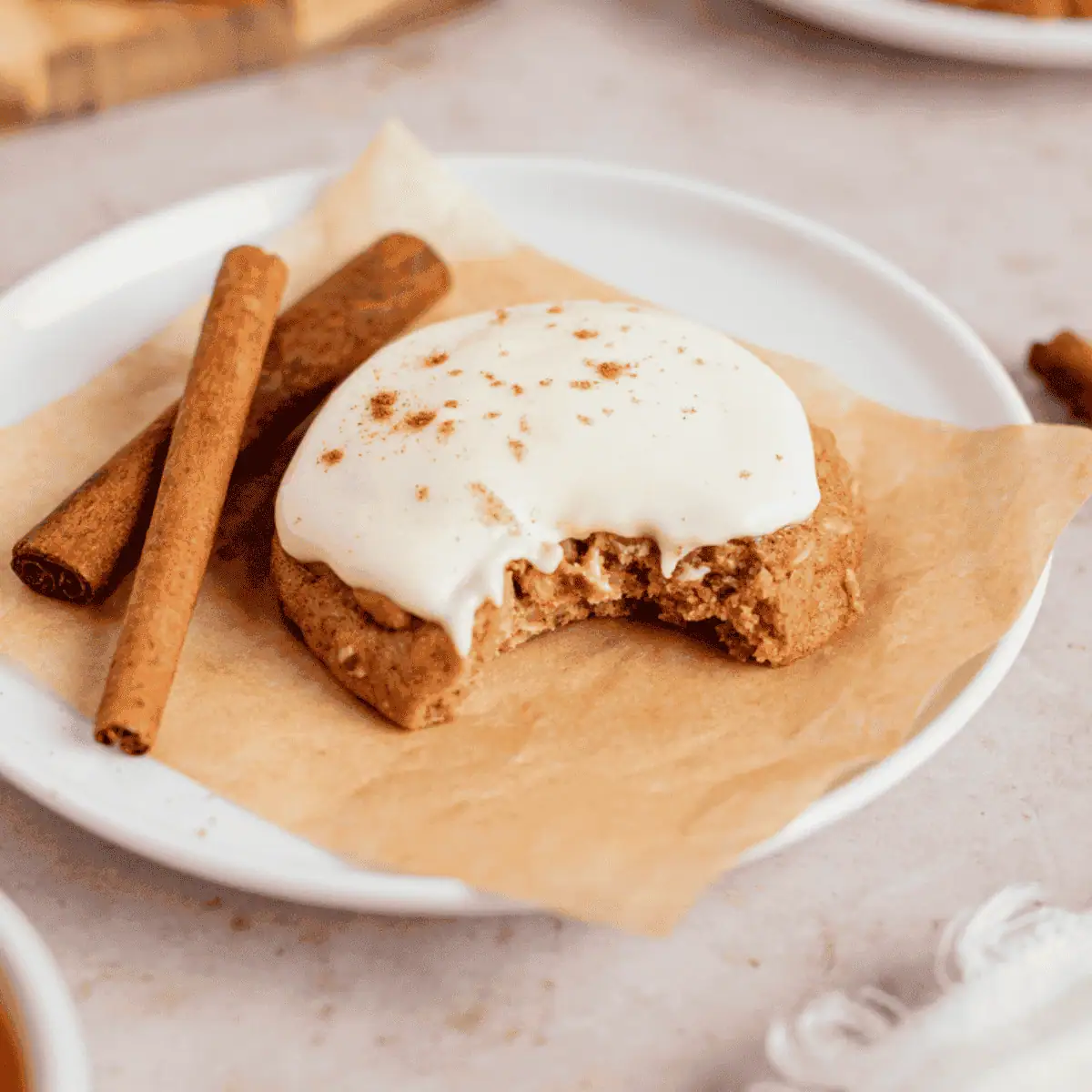 Enjoy these frosted pumpkin cookies with a pumpkin chai latte, freshly brewed coffee, or a glass of creamy milk!