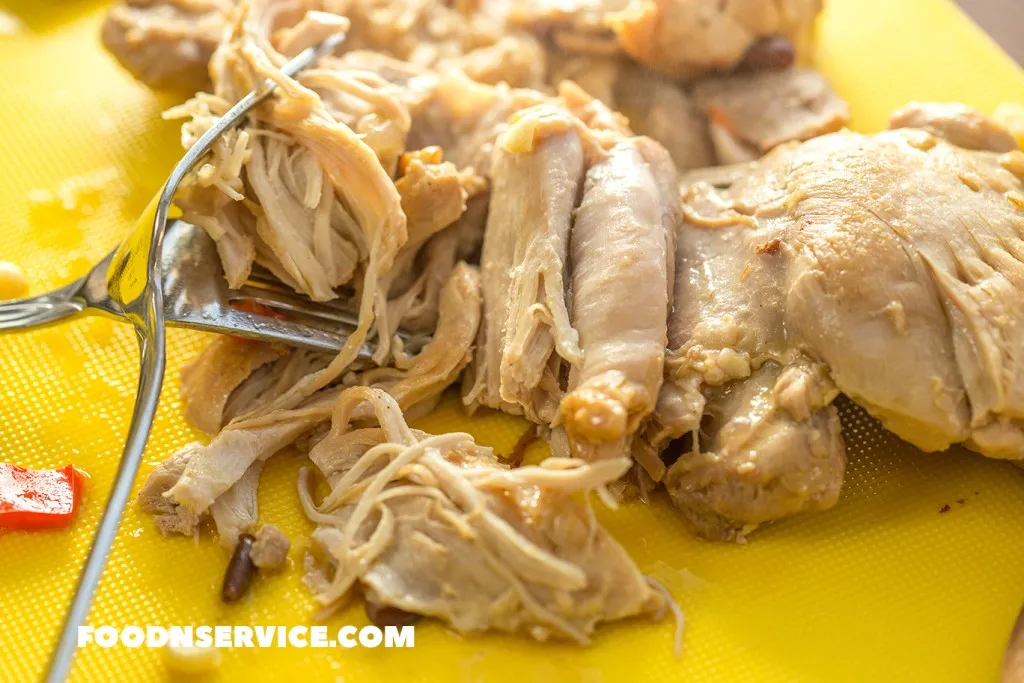 The thigh meat will shred super easy! If it was on the bone, it would seriously fall off of it.