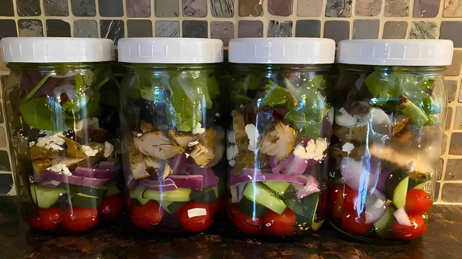 Greek Salad With Chicken In Mason Jars Meal Prep