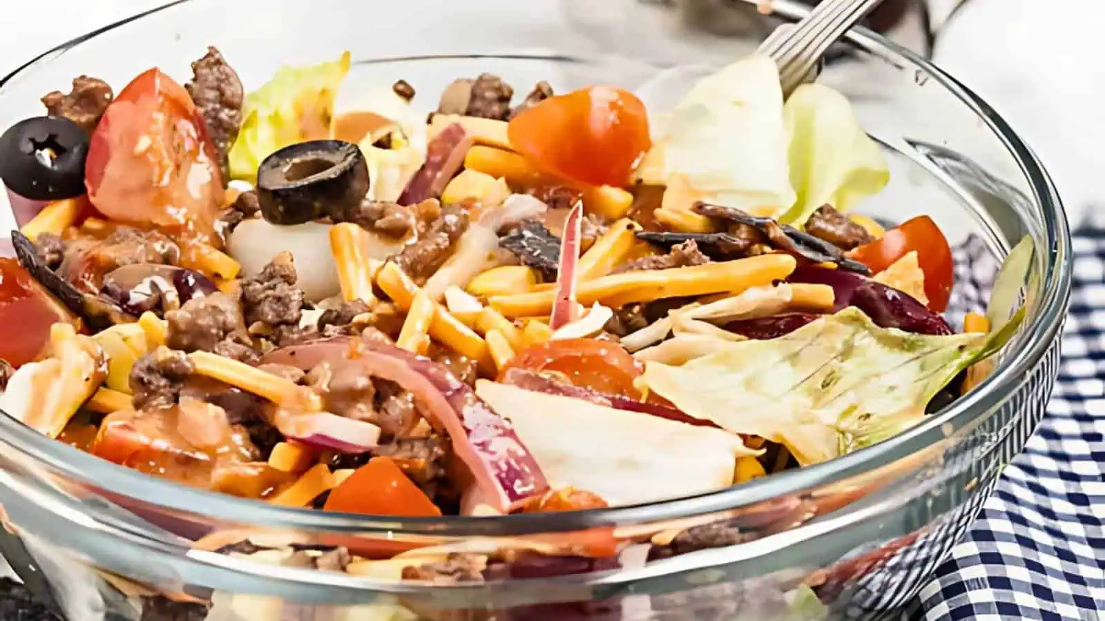 When you need a hearty salad in a pinch, Mexican taco salad has your back for last-minute potluck ideas. Loaded with bold flavors and crunchy toppings, it’s a meal disguised as a side dish. Everyone will love how filling and delicious it is.