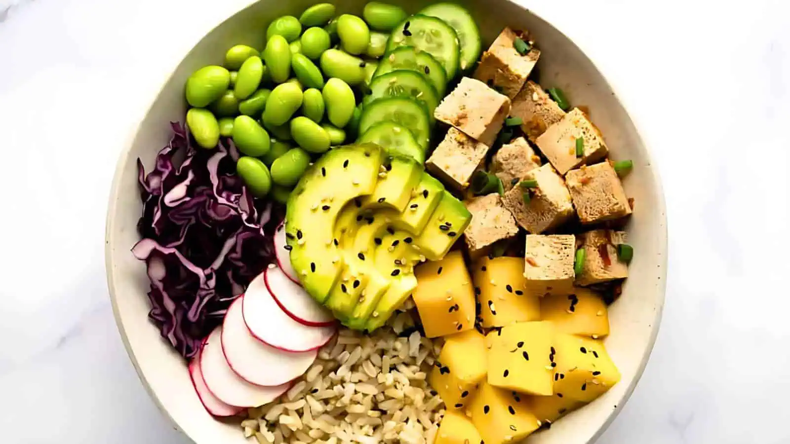 Quick Healthy Vegetarian Rainbow Poke Rice Bowl