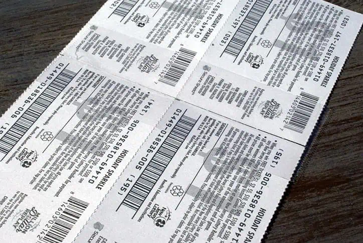 DONโT TEAR ALL OF YOUR TICKETS APART! You need them in groupings of 2. Tape 2 sets of joined tickets together at the seam along the sides. Repeat this step for the other sets until you have 2 sets of 4, and then youโll have an extra 2 tickets leftover, that are still joined together.