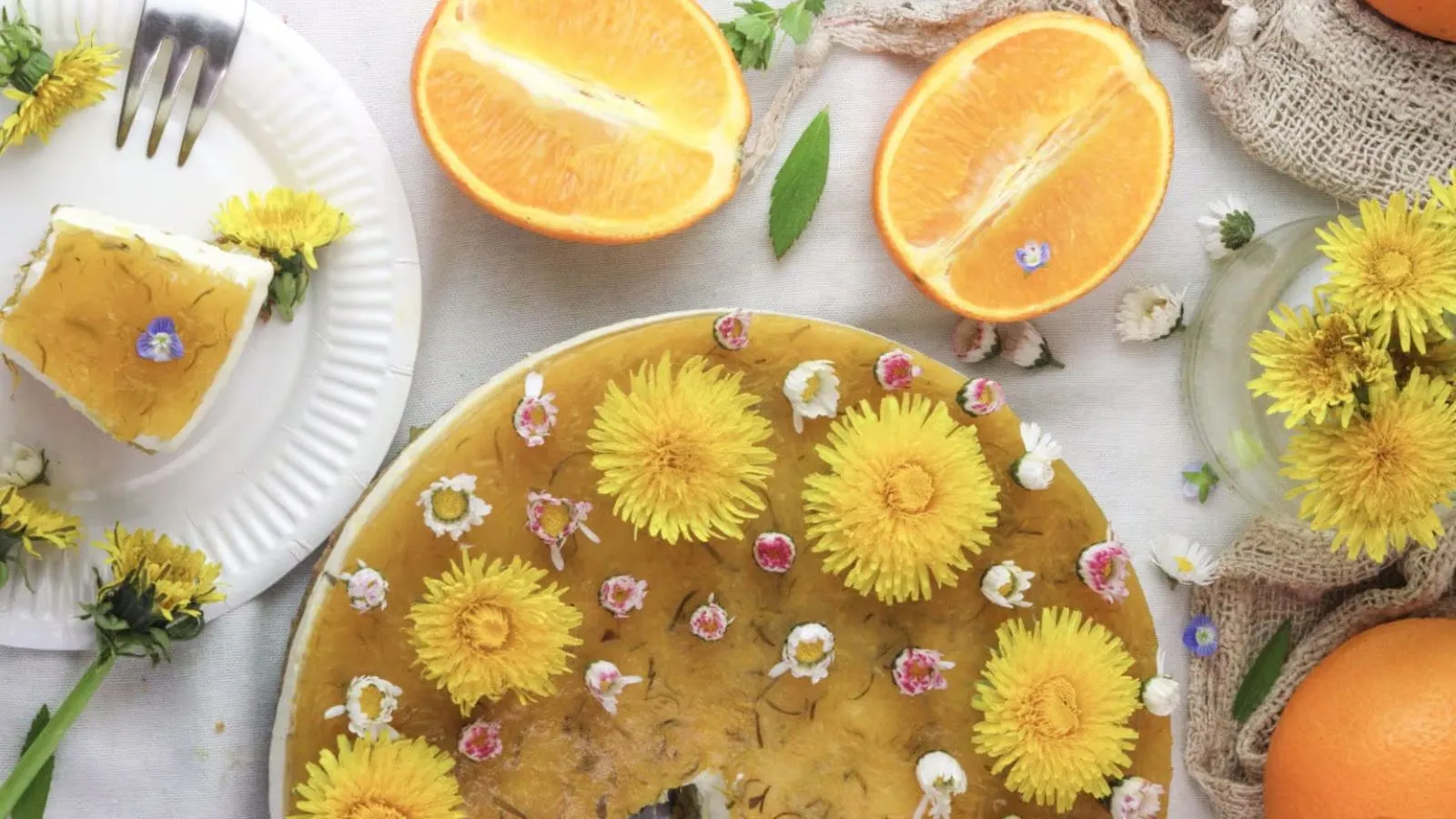 This one skips the oven but brings all the fresh, citrus energy you’d want in a spring dessert. The dandelions? Just a cheerful bonus.