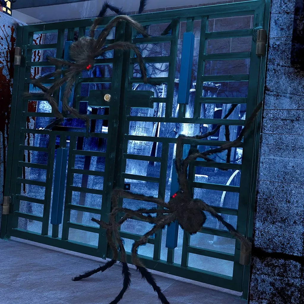 This set of two massive spiders with red eyes is an excellent Halloween embellishment to add a scary as well as a terrifying atmosphere for your home, school, office, Halloween parties.ย