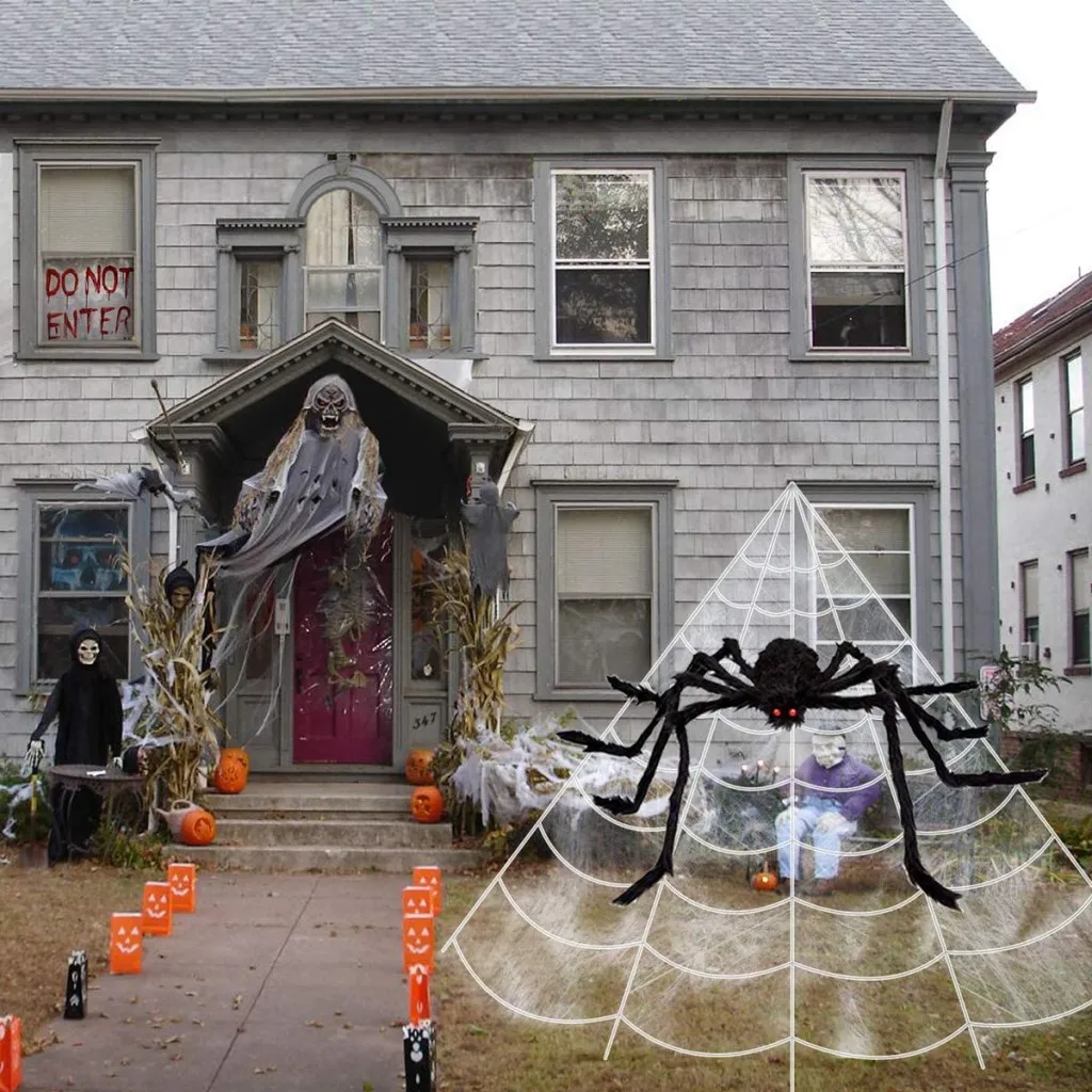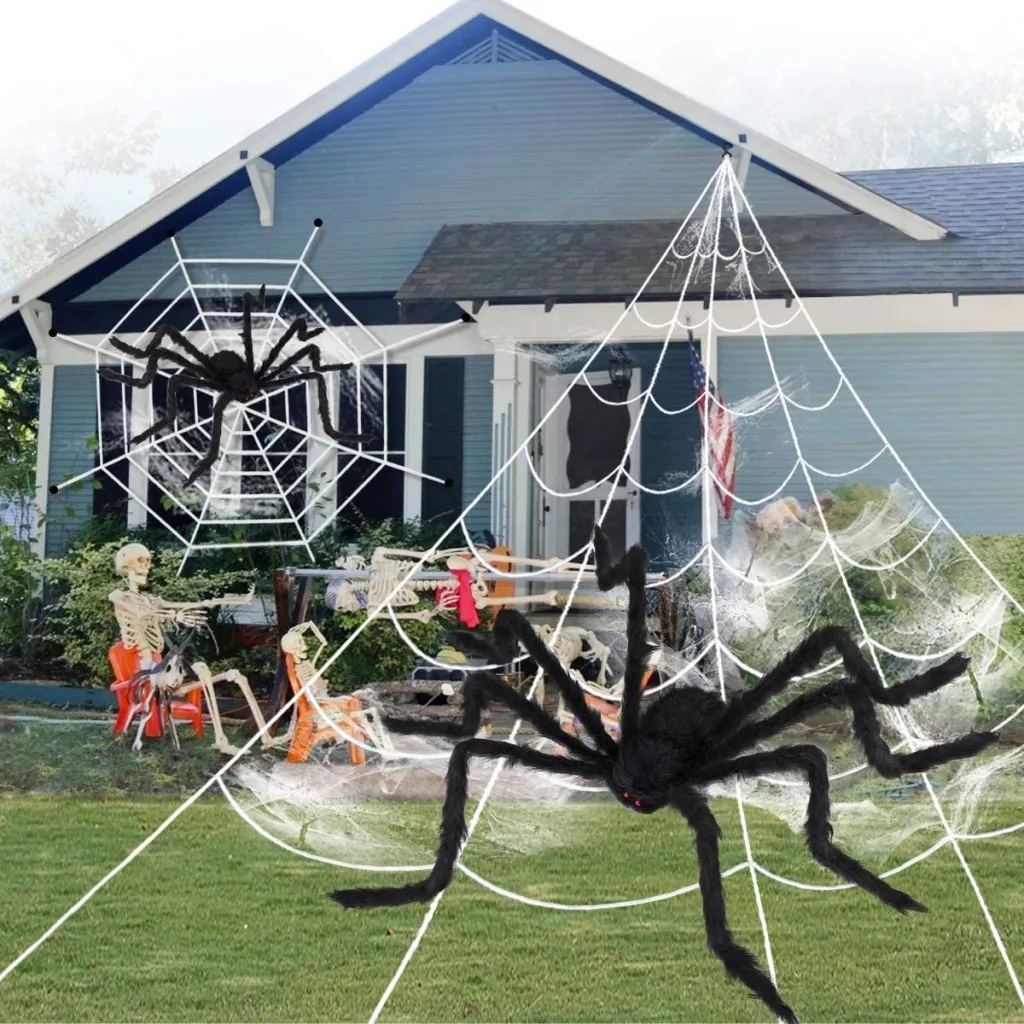 The circular and three-cornered spider web are built from durable, dense nylon material. It's pleated and unfolded effortlessly, doesn't twist. These are perfect for the large spiders!