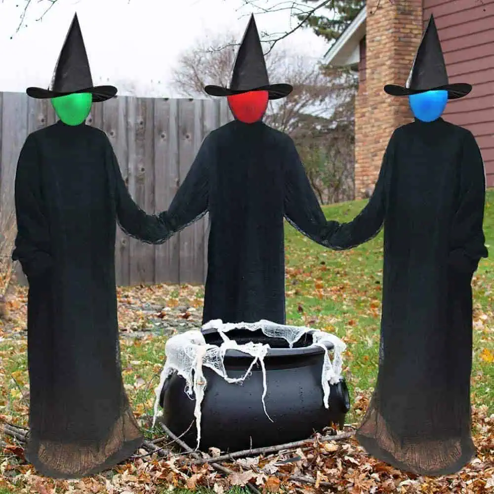 These set of three witches holding big hand in a spooky parade of creepy sisterhood. Perfect for your Halloween celebration or spooky house beautifications.