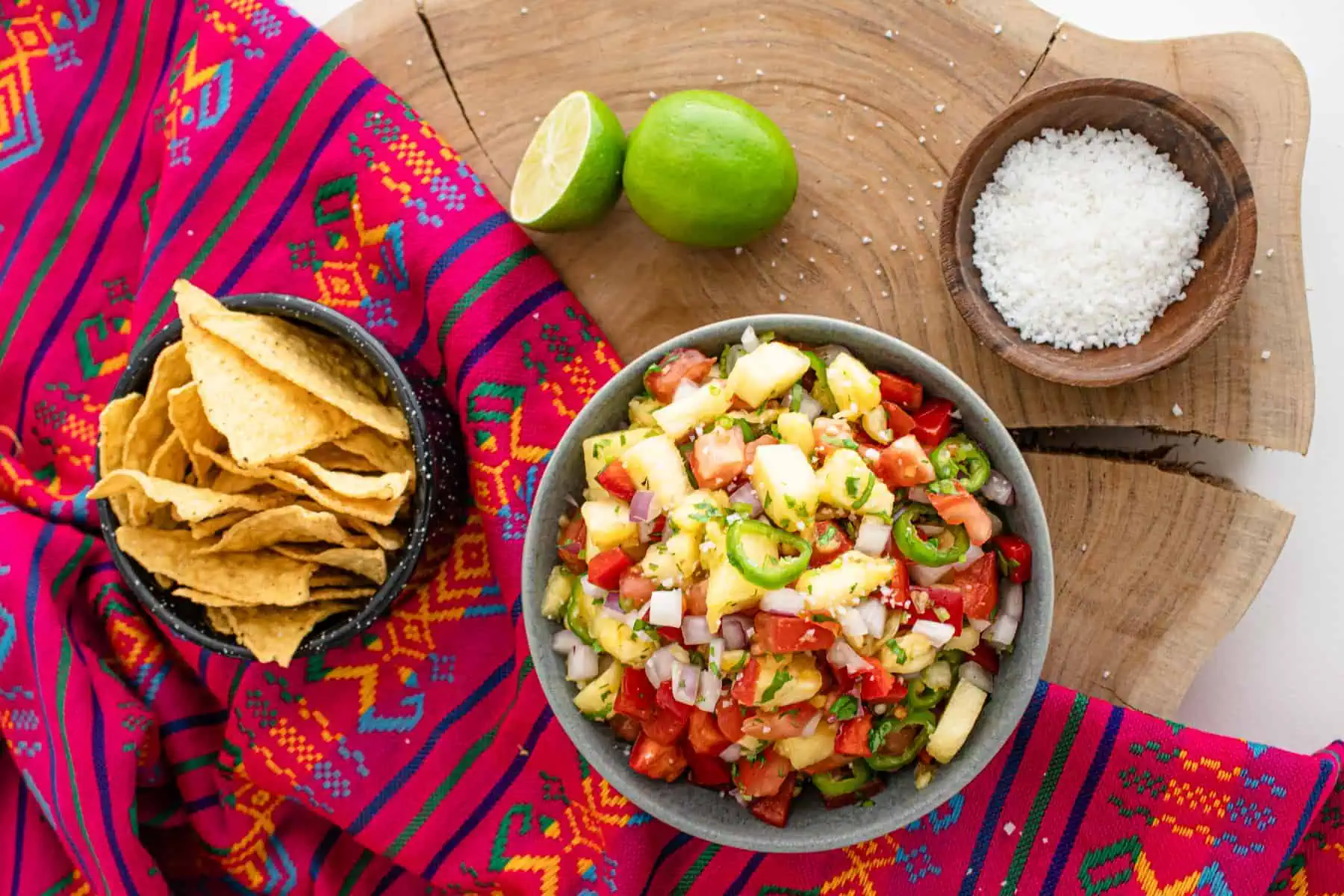 This juicy and flavor loaded pineapple salsa can be a nice savory accompaniment for your grilled veggies and meats, or as a side to any Mexican inspired foods like tacos, burritos and tortilla chips.