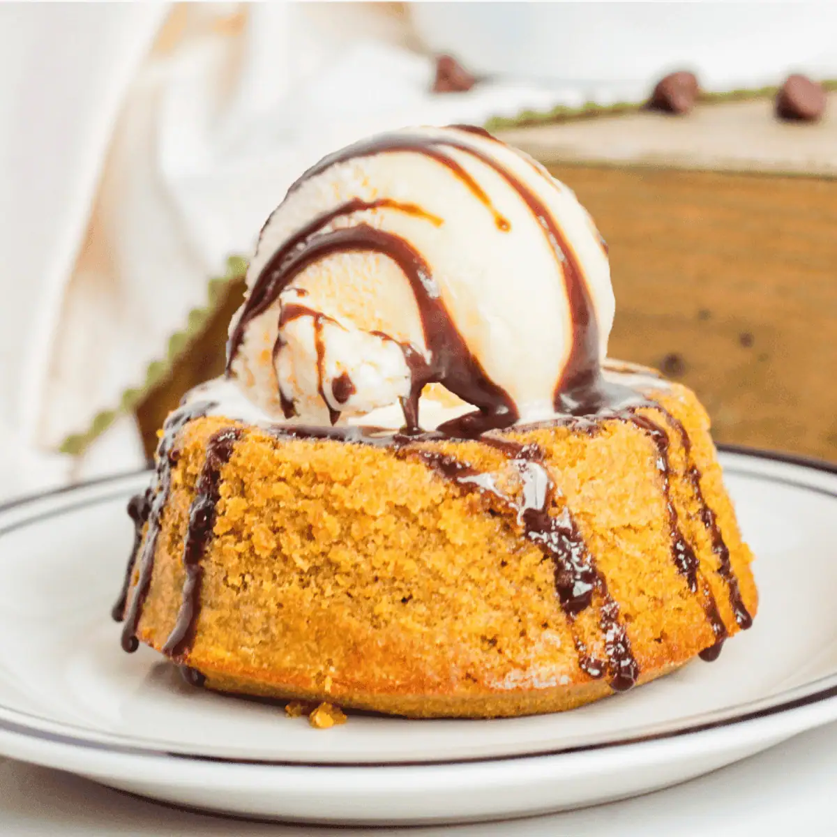 3. Flip the ramekins out over on a plate and serve with ice cream or whipped cream. A little caramel sauce or chocolate sauce never hurt anyone either!