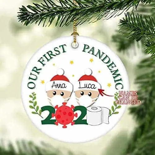 This pandemic led to a lot of people meeting their new favorite person. Now you can solidify that memory forever with these custom couple ornaments! They even feature the famous toilet paper and masks.