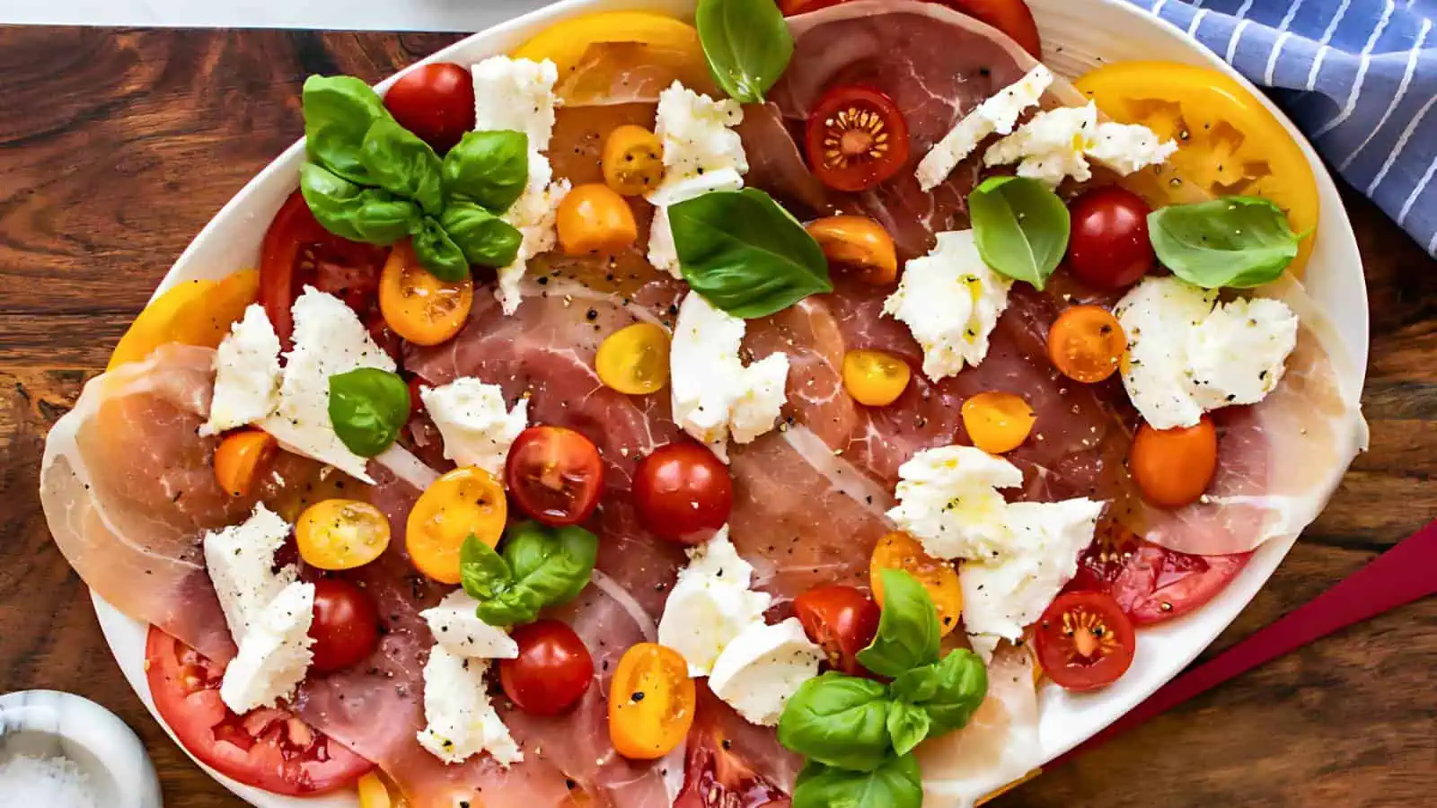 This caprese salad takes a fresh twist with the addition of prosciutto, making it a standout in any collection of recipes with prosciutto. Juicy tomatoes, creamy mozzarella, and salty prosciutto come together for a simple yet unforgettable dish. Perfect for summer, it's a great way to highlight peak-season tomatoes.