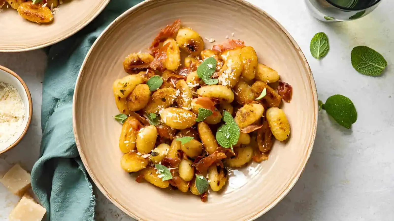 Crispy gnocchi, nutty brown butter, and crispy prosciutto come together in this comforting dish. The fried sage adds a perfect finishing touch. If you're searching for recipes with prosciutto that feel extra cozy, this one delivers.