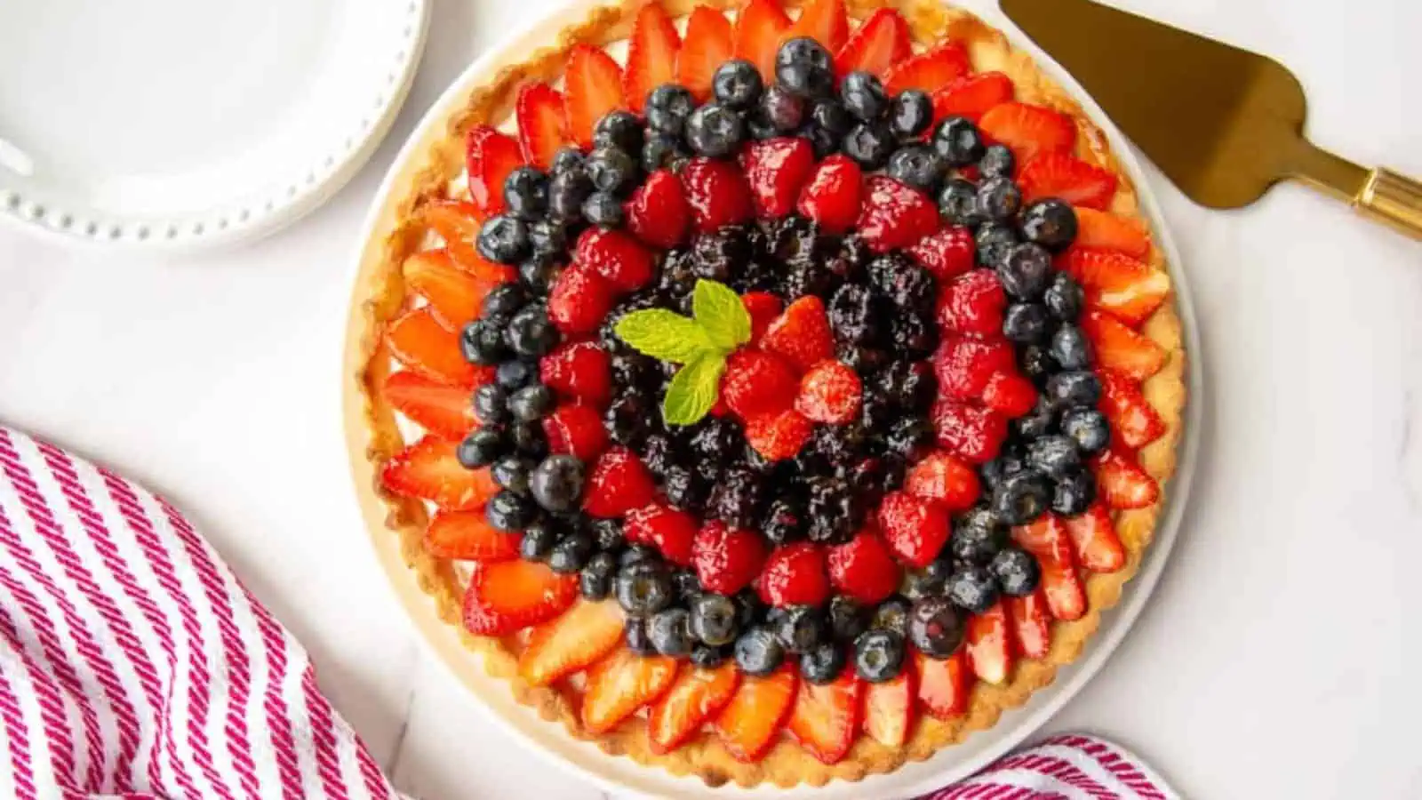 This tart starts with a flaky pastry base and finishes with sweetened cream cheese and fresh berries. You can serve it warm or cold depending on your preference. It bakes quickly and cuts neatly once cooled. It’s a reliable pick if you're looking for red white blue desserts that also feel a bit polished.