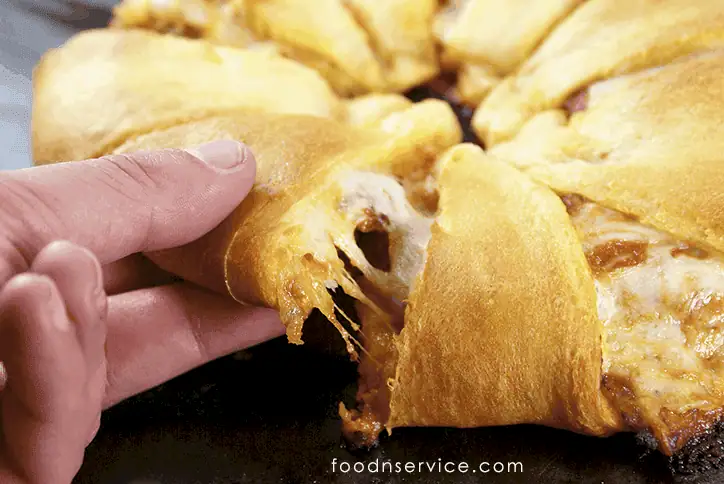 - Takethe outer edges of the croissant edges, and pull towards the center and slightly press in the middle to close. Repeat to the other 7 remaining points.