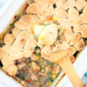 Traditionally, it's baked in the oven with a flaky crust; however, we're going to use store bought canned biscuit dough in place of it!