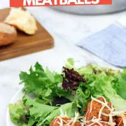 slow cooker meatballs with shredded parmesan cheese and mixed greens