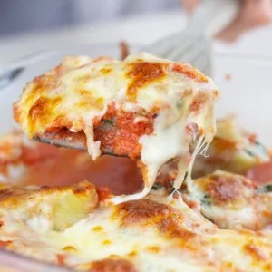 - Sprinkle with remaining 3 ounces of mozzarella on top. Feel free to add more if you like!