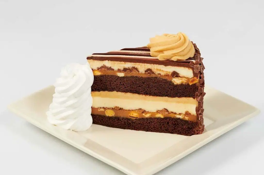 This towering dessert blends cheesecake with layers of chocolate cake and generous swirls of peanut butter. Inspired by Reese's, it leans heavily into that iconic chocolate-peanut butter pairing. The combination of moist cake and dense cheesecake creates a multi-textured experience that feels more like two desserts in one.