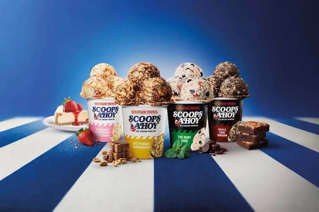 Capture the essence of the Hawkins mall ice cream parlor with assorted ice cream pints. Choose classic flavors like vanilla, chocolate, or even a playful strawberry. For the best texture, let the ice cream sit out for a few minutes after scooping to enhance creaminess. Serve in waffle cone cups or retro sundae dishes. Top with sprinkles, chocolate syrup, or cherries to evoke that 80s feel. This offers a sweet and thematic end to your snack lineup.