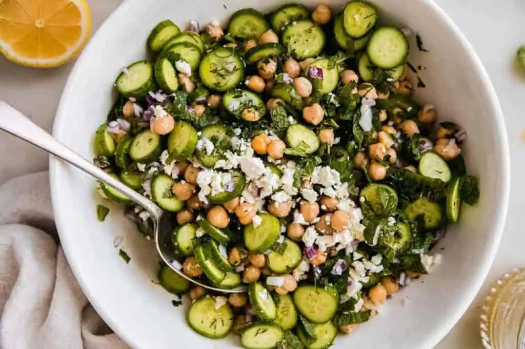 Get the recipe: Bright Cucumber Chickpea Salad with Feta