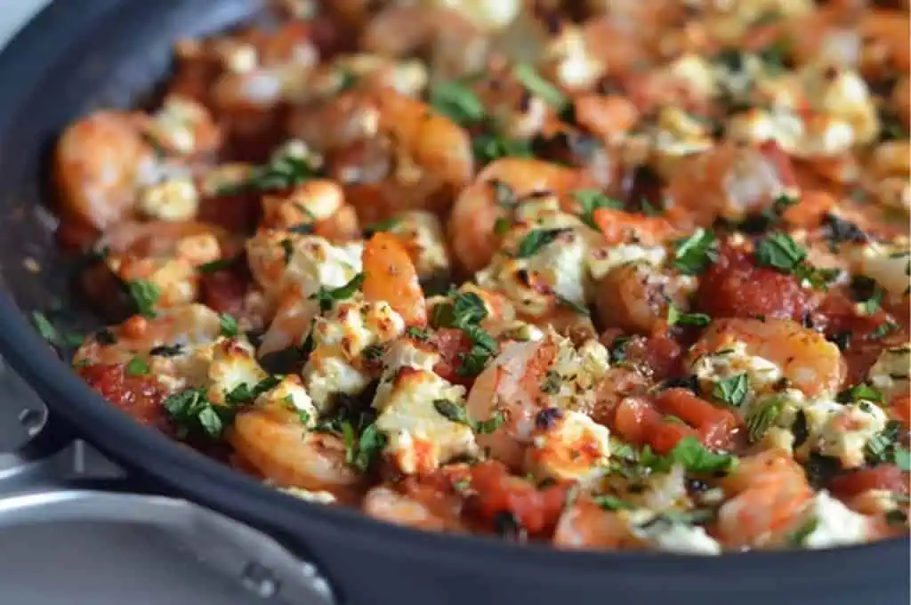 Heat olive oil in a skillet over medium heat and sautรฉ onions and garlic until fragrant. Add canned tomatoes, simmering until slightly reduced. Stir in a splash of ouzo for an aniseed fragrance, then nestle the shrimp into the sauce and cook until they turn opaque. Crumble feta over the top and allow it to soften, stirring gently. Finish with fresh herbs like dill or parsley and a squeeze of lemon. This dish blends briny shrimp with tangy tomatoes and creamy feta for an unquestionably Mediterranean taste.