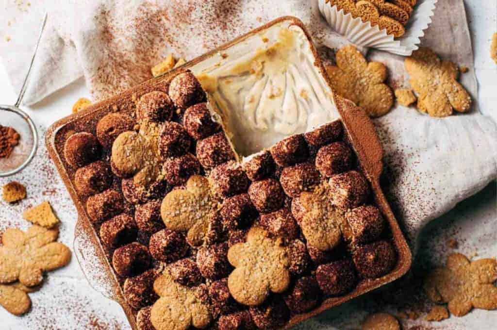 Start by baking a moist gingerbread cake, using a blend of spices like ginger, cinnamon, and cloves. Prepare a mascarpone filling by folding in whipped cream for lightness. Instead of traditional coffee-soaked ladyfingers, use slices of the gingerbread cake, gently layered with the mascarpone mixture. For an added touch, incorporate a drizzle of ginger syrup between layers. Top with a dusting of cocoa powder and candied ginger pieces, creating a harmonious blend of Italian elegance and holiday warmth.