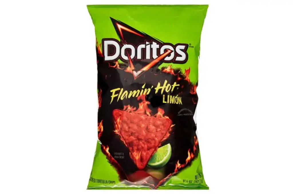 Flamin' Hot Limรณn Doritos bring a vibrant heat balanced by a citrusy tang that invigorates the palate. The intensity of the chili spice is complemented by the zesty lime, offering a dynamic experience that is both fiery and refreshing. The chips' bright red coating signifies the boldness in flavor, with a crisp texture adding to the fiery allure. For fans of spicy snacks, this variant combines heat with a whimsical touch of citrus.