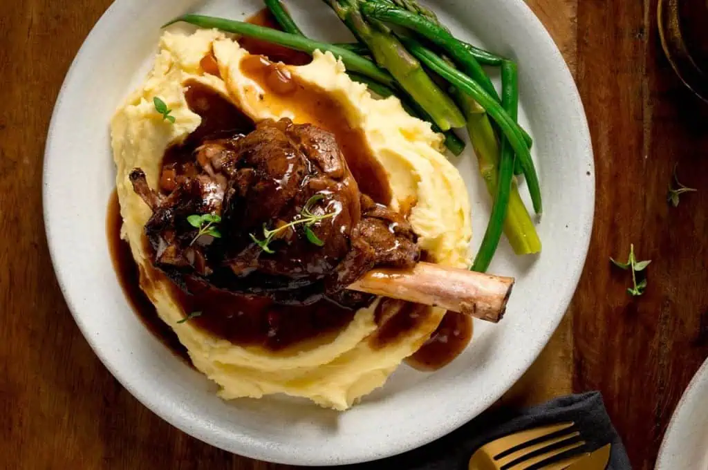 Season lamb shanks with salt, pepper, and rosemary, then sear them in a hot pan to lock in flavors. Transfer to the crock pot with aromatic vegetables, red wine, and stock, which provide a rich braising liquid. The slow, gentle cooking turns the lamb tender and succulent, imparting a luxurious texture that falls off the bone. Finish with a reduction of the braising liquid to serve as a sauce, enhancing the depth of the lamb's earthy, robust flavor.