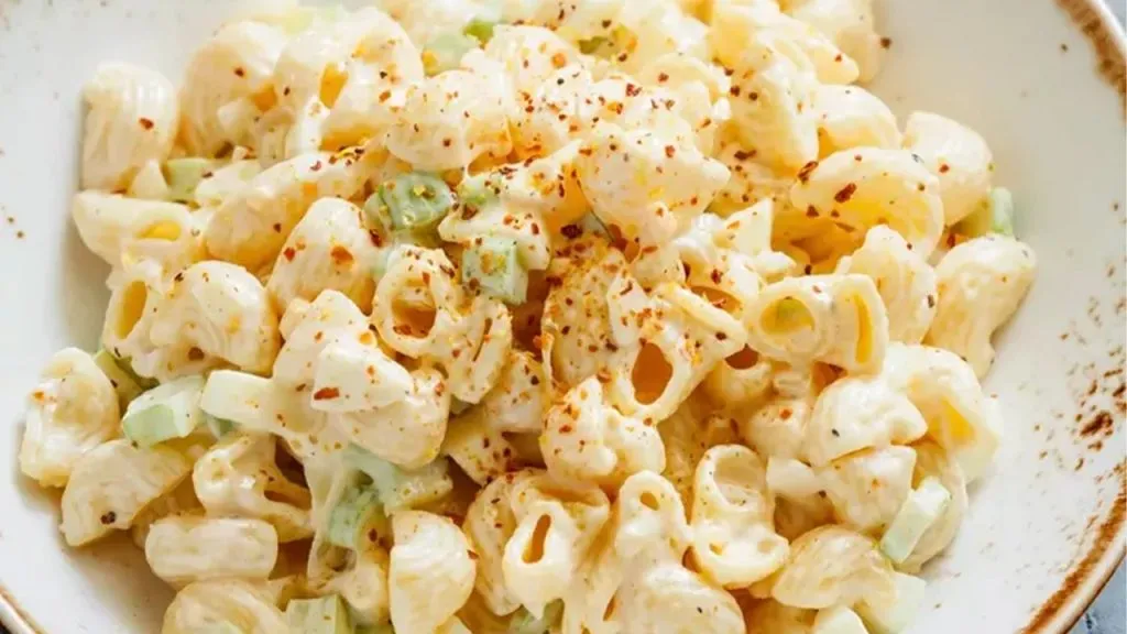 Prepare elbow macaroni until just tender, then immediately rinse under cold water to halt cooking, preserving its shape. In a large bowl, blend mayonnaise, sour cream, and a splash of white wine vinegar for a smooth, tangy base. Fold in the pasta with finely diced red bell peppers and scallions for color and zest. Add shredded carrots for sweetness and paprika for a subtle warmth. Taste for seasoning, adjusting salt and pepper as needed, and garnish with freshly chopped dill. This refreshing salad boasts a rich, creamy texture with a balanced, flavorful bite.