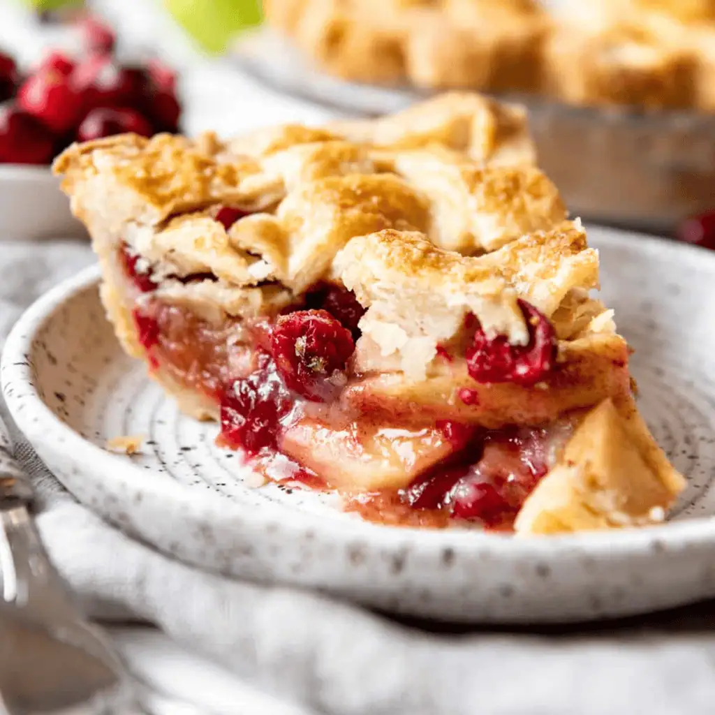 This vibrant pie blends tart cranberries with sweet apples, creating a perfect harmony of flavors. As it bakes, the fruit bubbles into a jewel-red filling that feels festive and refreshing. The mix of sweet, tangy, and buttery notes makes it less heavy than other holiday pies meaning most people happily return to the dessert table for a second slice.