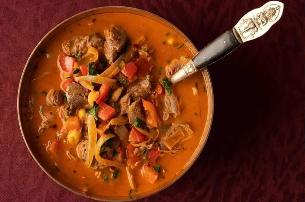 Combine chickpeas with tomatoes, onions, and bell peppers in a pot to create a rustic, hearty base. Add cumin, paprika, and a hint of cinnamon for a warm, spiced aroma. Simmer gently with a splash of broth to meld flavors. Finish with a handful of spinach for freshness and olives for briny depth. Serve with crusty bread to soak up the richly spiced sauce. This stew offers a medley of textures and tastes, with each spoonful a reflection of Mediterranean warmth and hospitality.