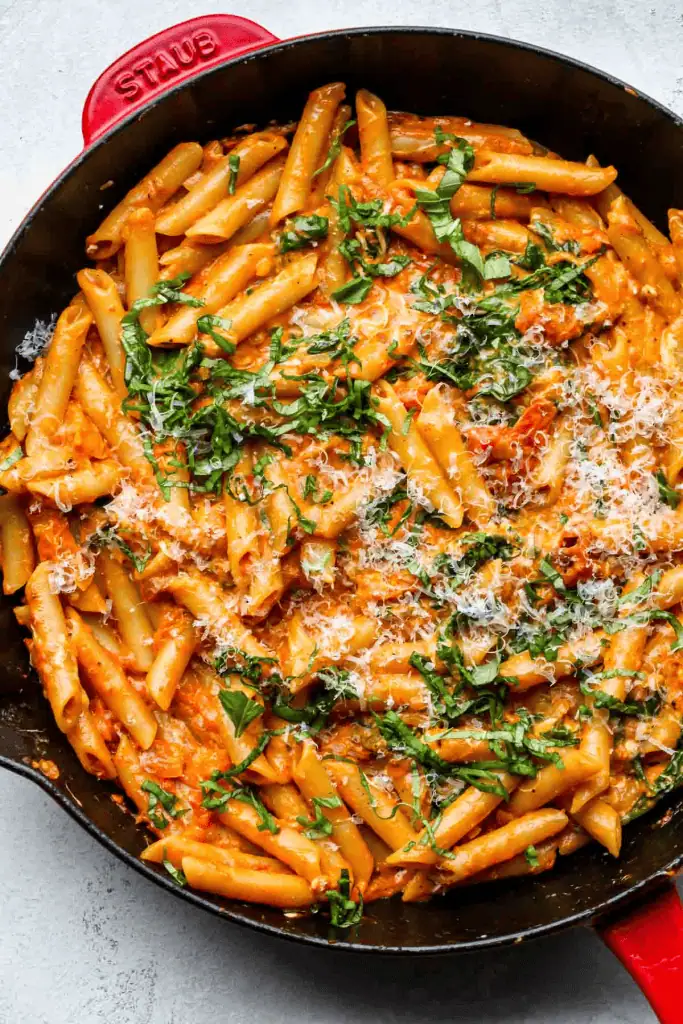 Pasta, tomatoes, cream, garlic, and basil cook in the same pot, creating a silky, flavorful sauce that clings to every noodle. The simplicity of the ingredients makes this dish feel fresh and comforting at the same time. It’s ready in minutes and perfect for low-effort weeknights. A sprinkle of cheese finishes it beautifully.