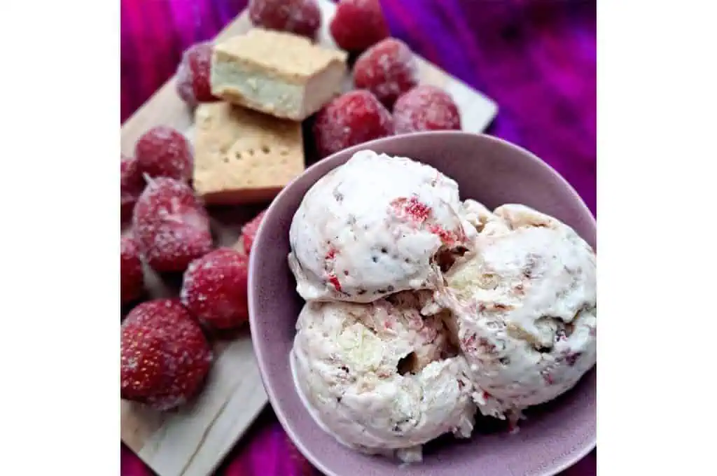 Cool Britannia is a celebration of British summer fruits. This ice cream combines a vanilla base with strawberry, blackcurrant, and raspberry swirls. Begin by creating a fruit coulis: simmer the berries with sugar until they break down, then strain to remove seeds for a smooth consistency. Fold the cooled coulis into a creamy vanilla base, creating vivid streaks with each churn. The result is a refreshing scoop that captures the essence of an English garden. Each spoonful offers a burst of berry flavor, perfectly offsetting the rich cream.