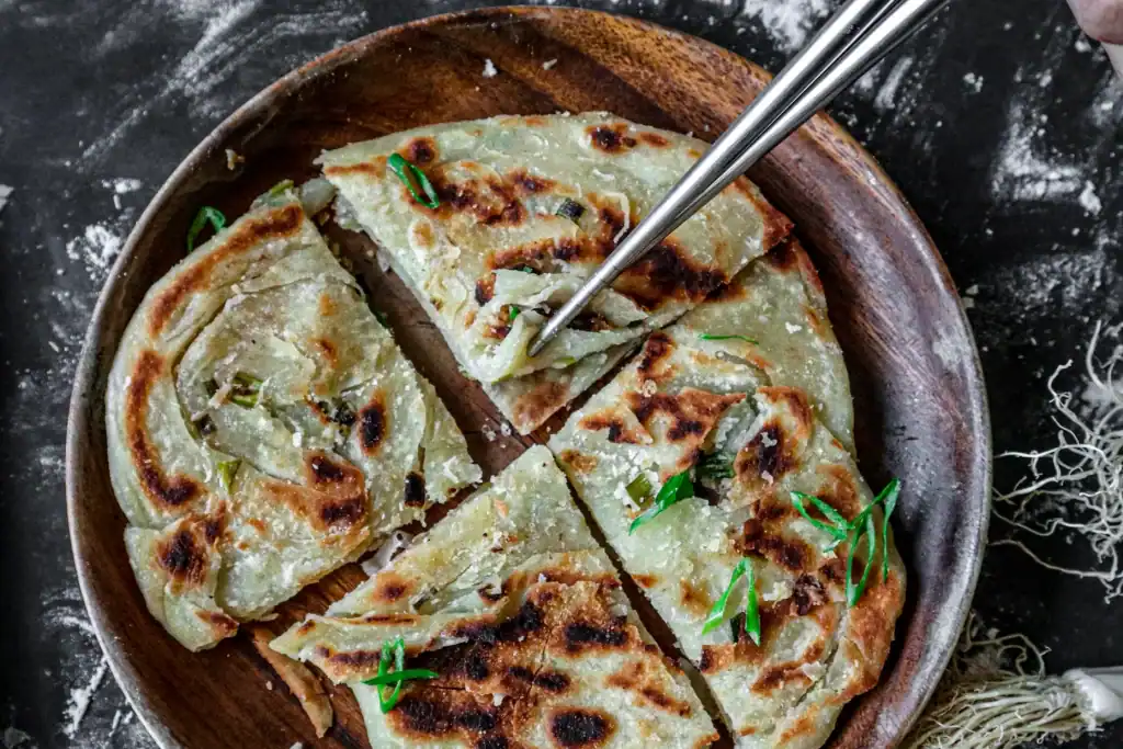 Taiwanese scallion pancakes, or cong you bing, are flaky, pan-fried breads made by layering dough with green onions and rolling them into spirals. They are crispy on the outside and chewy inside, often enjoyed with soy dipping sauce or chili oil. Street vendors across Taiwan sell them fresh and hot throughout the morning. They require no yeast, making them easy to prepare at home for a quick and flavorful breakfast.