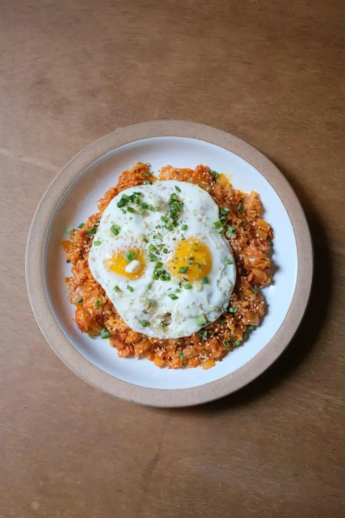 Kimchi fried rice, or kimchi bokkeumbap, is a quick and flavorful dish made from leftover rice and fermented cabbage. Its tangy, spicy flavor is balanced by a fried egg on top and a sprinkle of sesame seeds. The fermentation gives the dish natural probiotics, making it both tasty and gut-friendly. For a richer version, you can add bits of pork, spam, or tofu. It is the perfect comfort meal for busy mornings or lazy weekends.