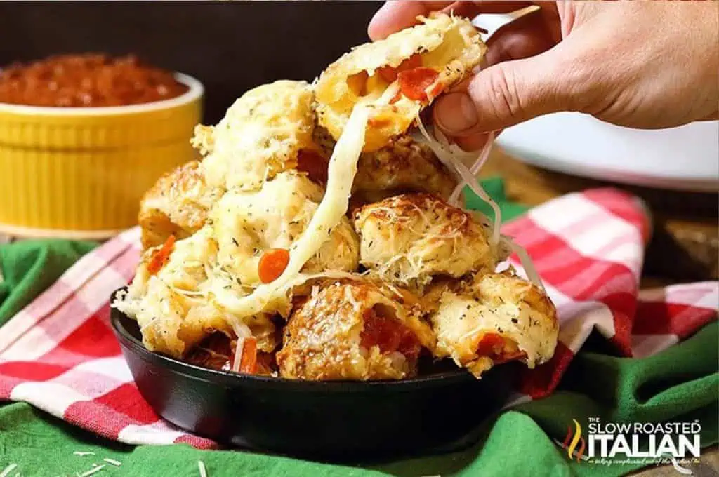 Begin with store-bought pizza dough, dividing it into small portions. Flatten each piece and place a cube of mozzarella and a slice of pepperoni in the center. Pinch the edges together, forming a tight seal. Arrange on a baking tray lined with parchment paper, seam-side down. Brush each with garlic butter and sprinkle with parmesan. Bake at 400°F until golden and bubbly, about 12-15 minutes. These cheese bombs deliver a burst of gooeyness, with the garlic butter adding a savory aroma and the melted cheese creating an irresistible pull.